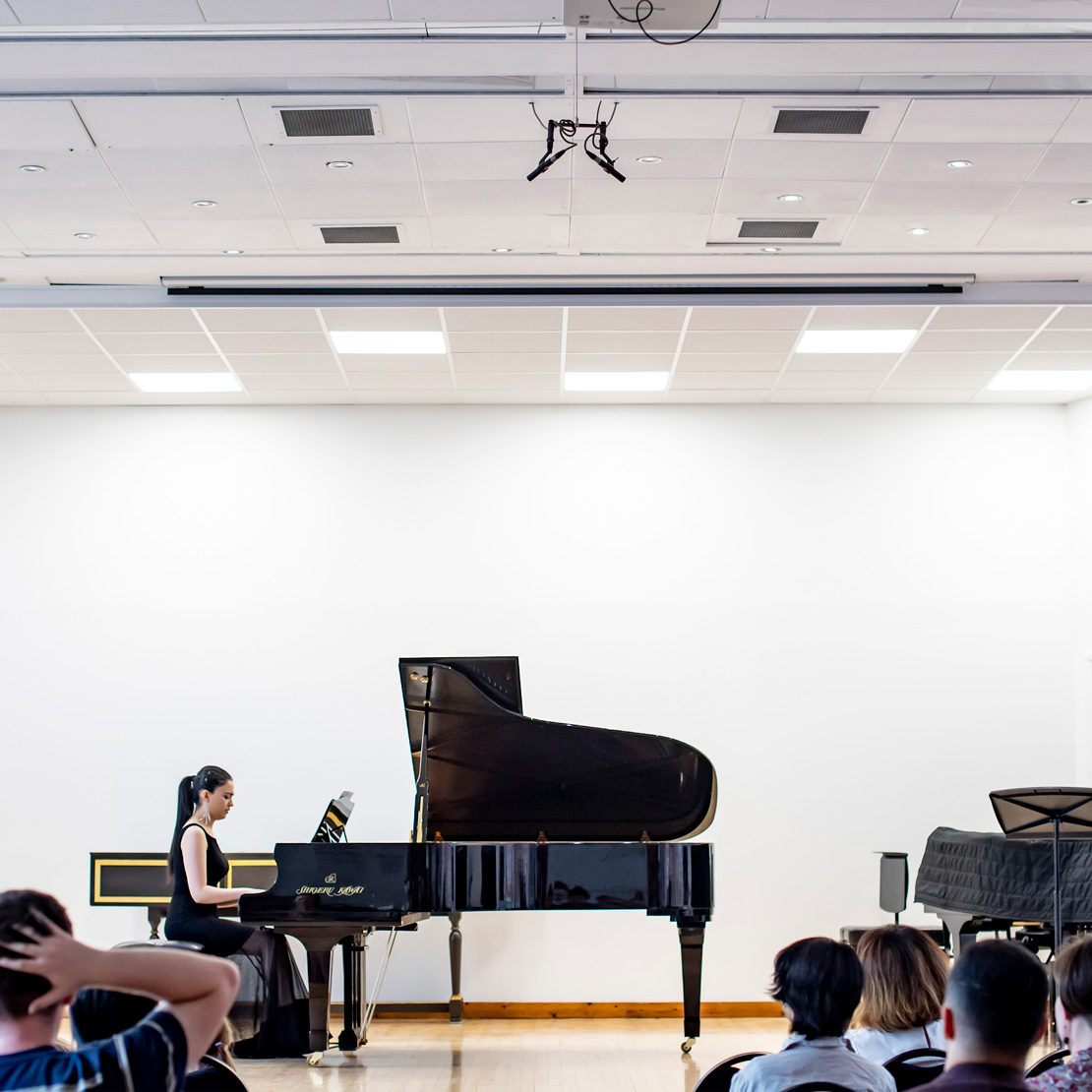 Our 100-seat Recital Hall is used for smaller events and more informal occasions. It features two Steinway grand pianos, a harpsichord, projector and dropdown screen.