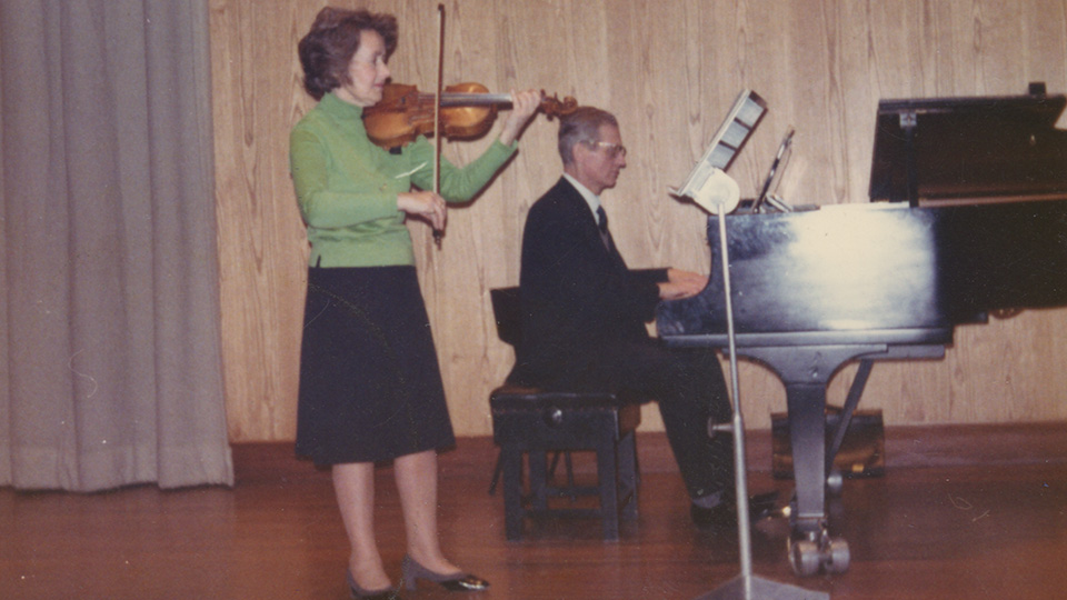 Photo: Maria Lidka with Peter Gellhorn in the Purcell Room, 1973, credit Gellhorn Family Archive